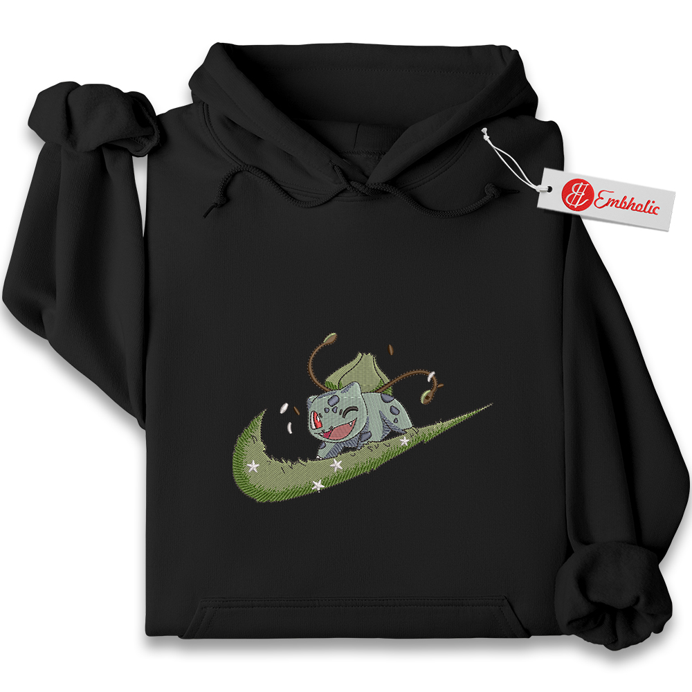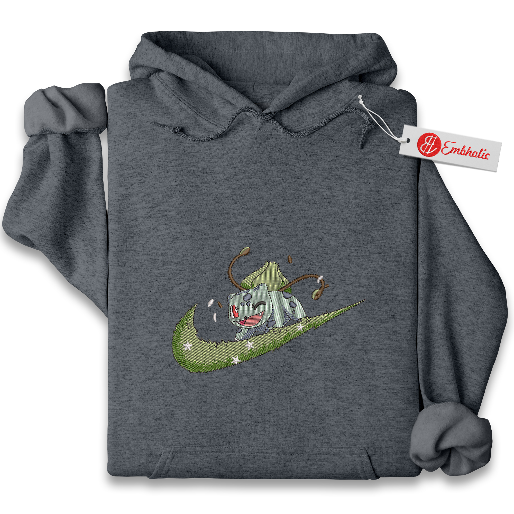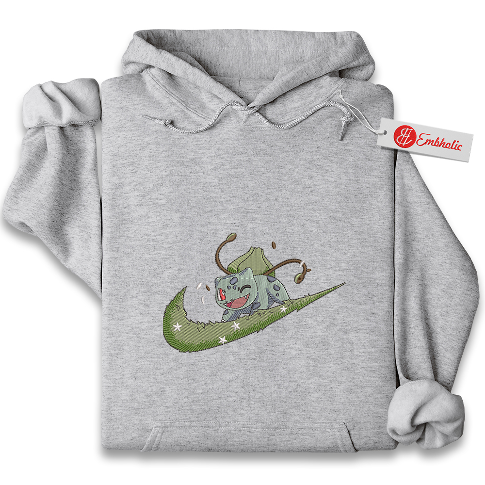 Bulbasaur Embroidered Hoodie, Pokemon Shirt, PKM Shirt, Anime Embroidered Hoodie