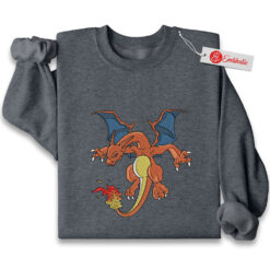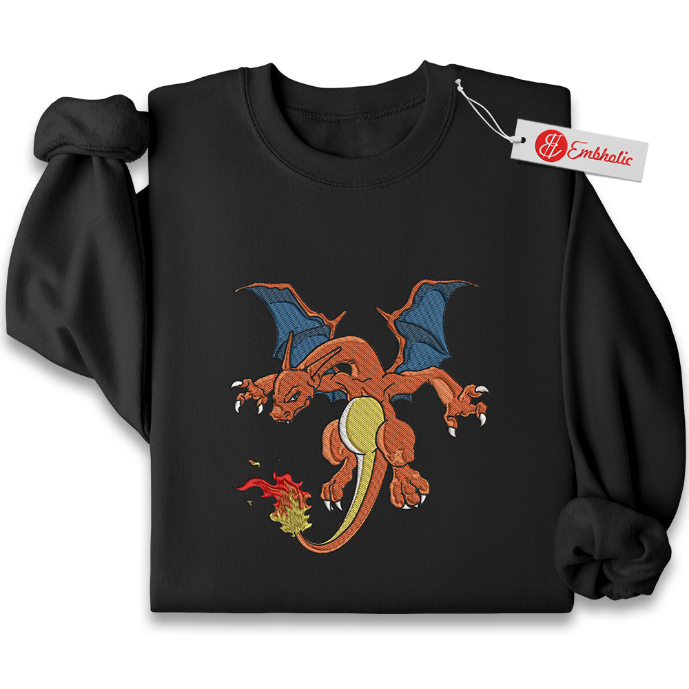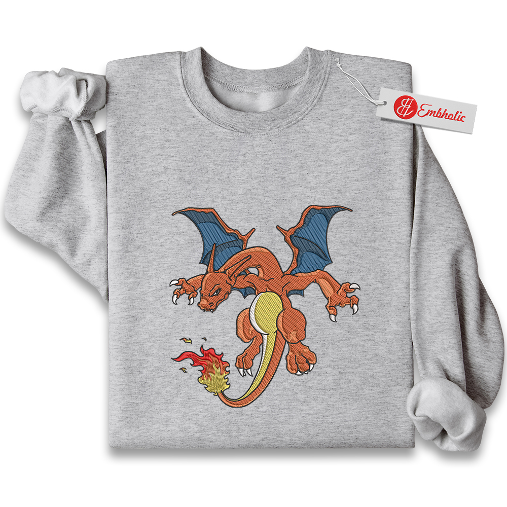 Charizard Embroidered Sweatshirt, Pokemon Shirt, PKM Shirt, Anime Embroidered Sweatshirt