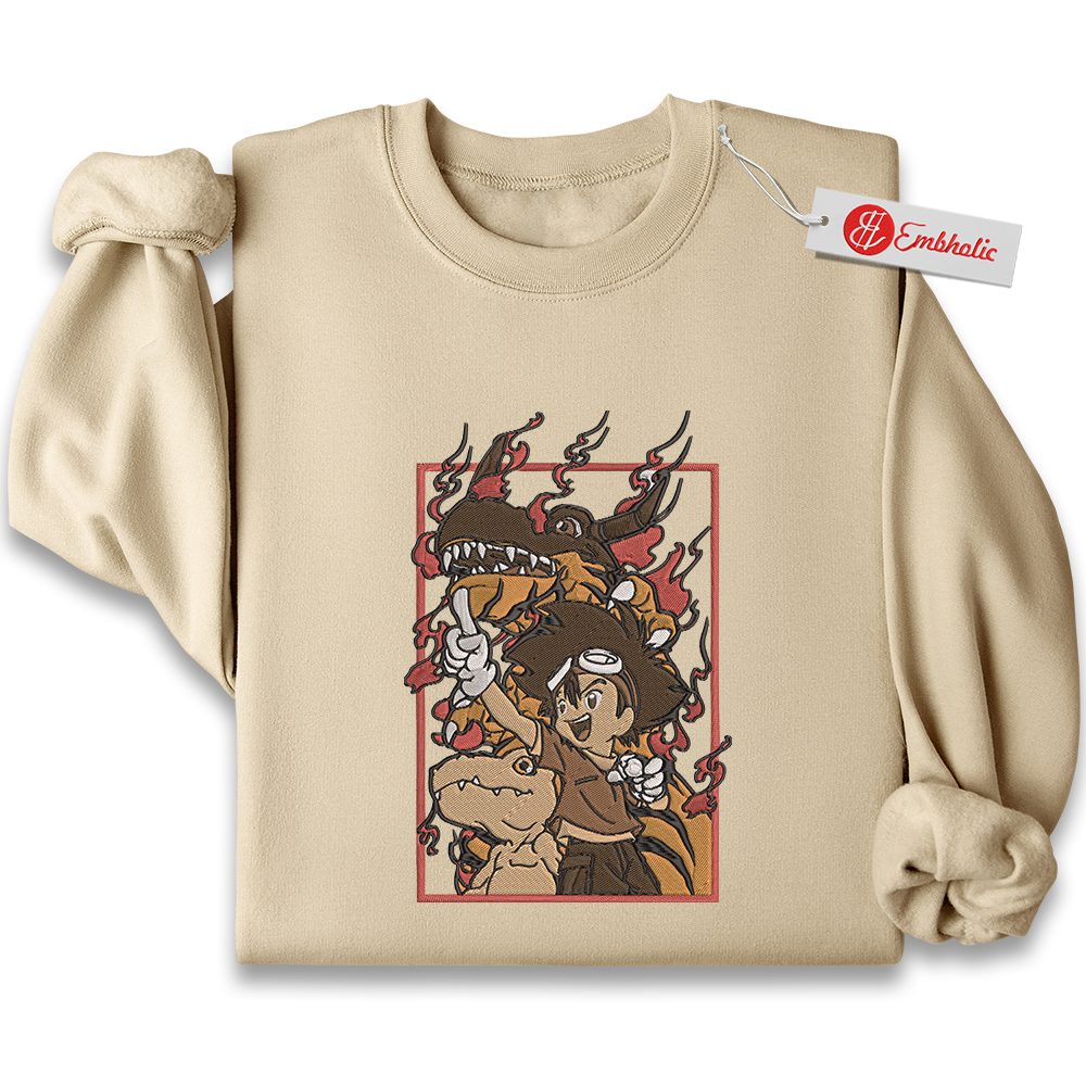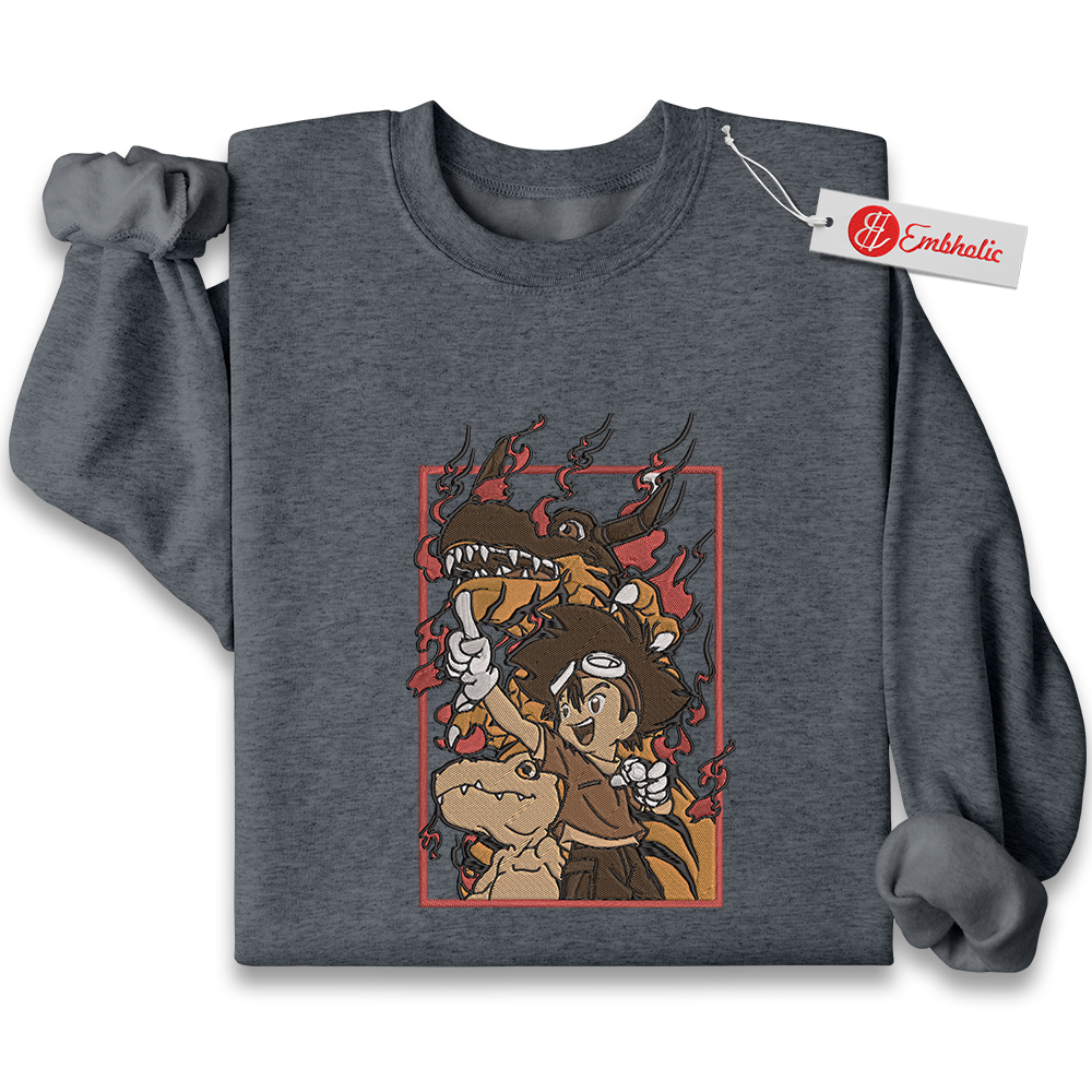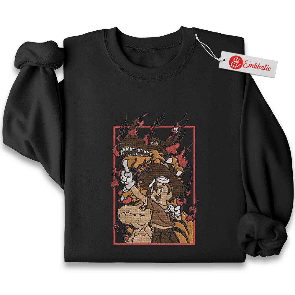 Digimon Embroidered Sweatshirt, Agumon Shirt, Greymon Shirt, Taichi Kamiya Shirt, Anime Embroidered Sweatshirt