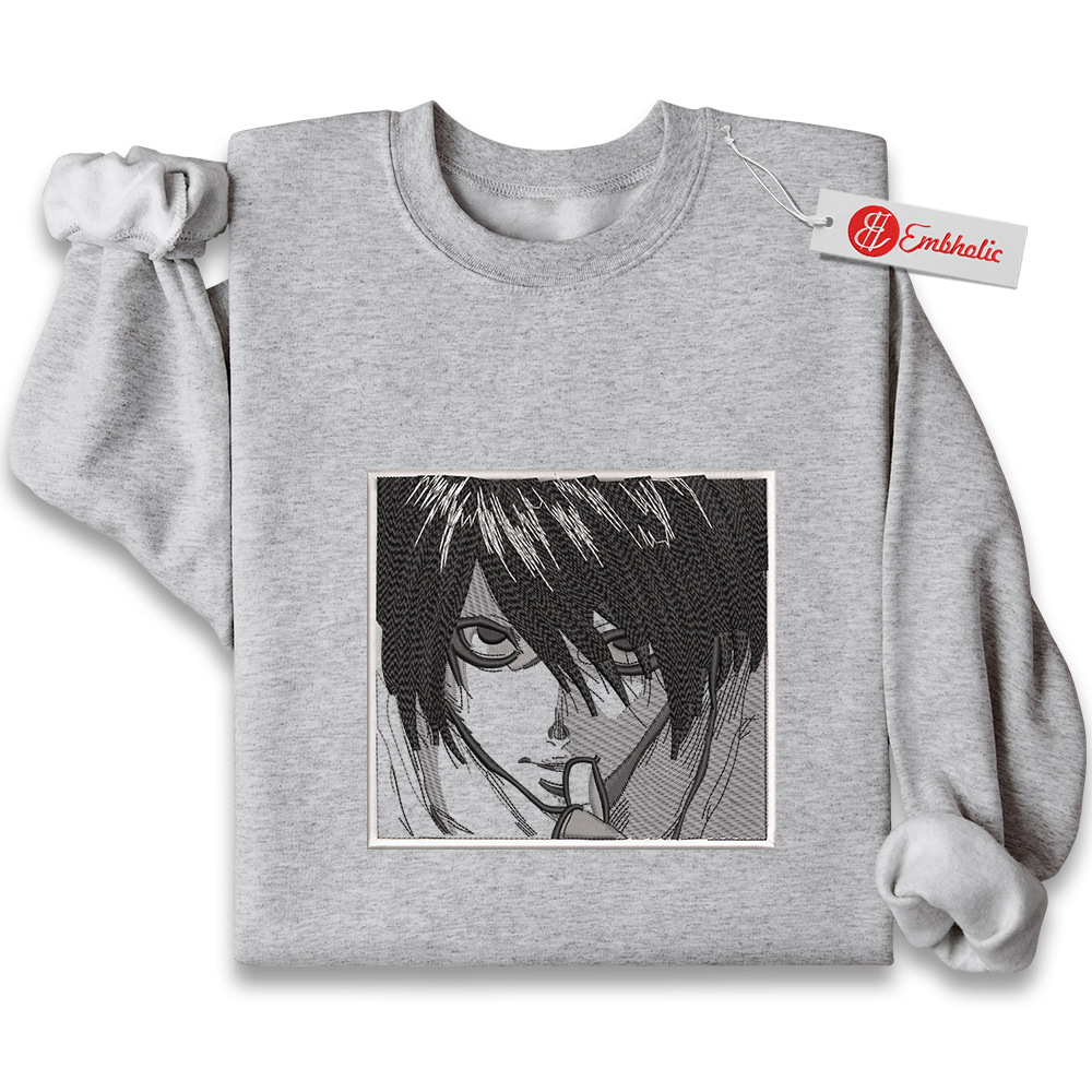 Embroidered L Sweatshirt, Death Note Shirt, Anime Embroidered Sweatshirt