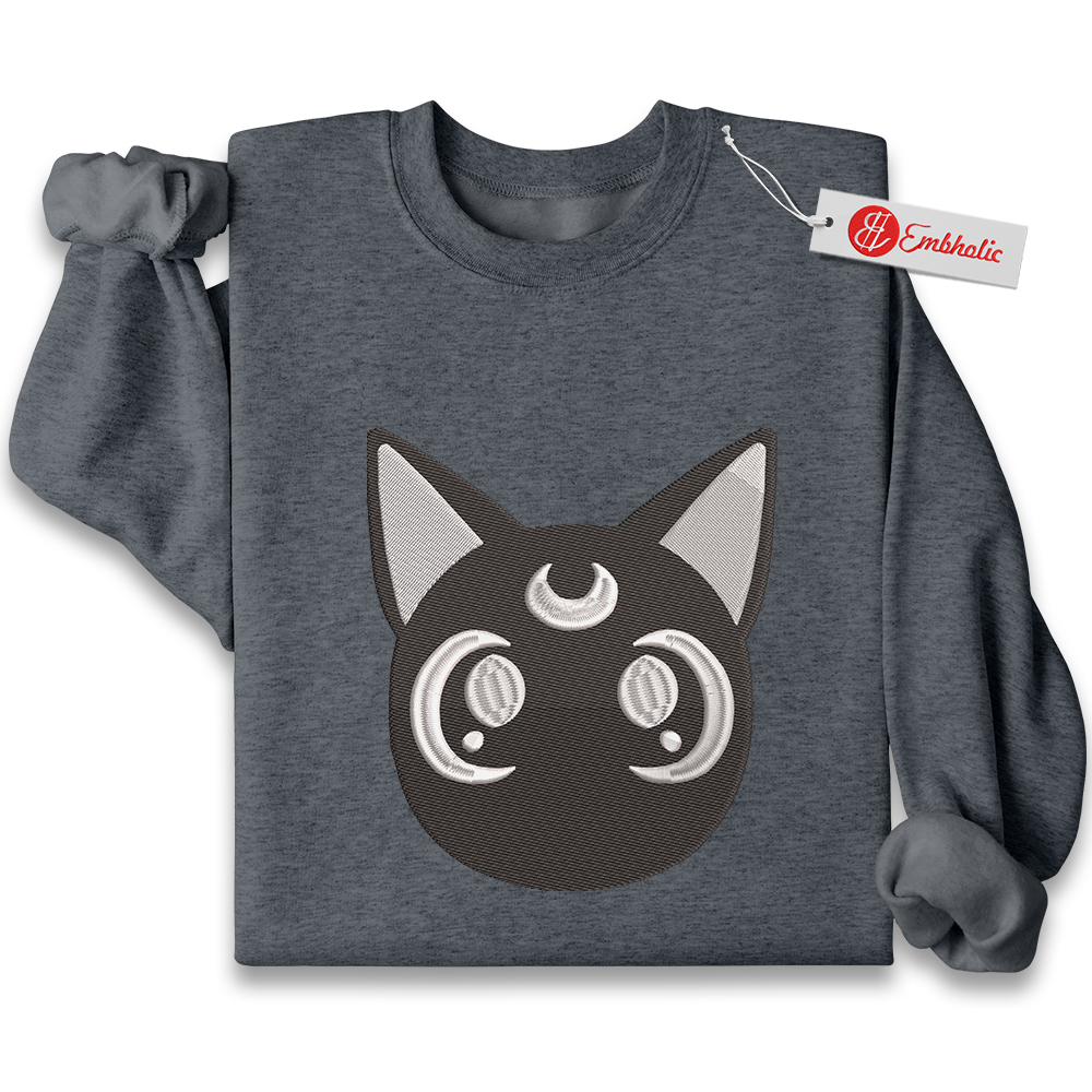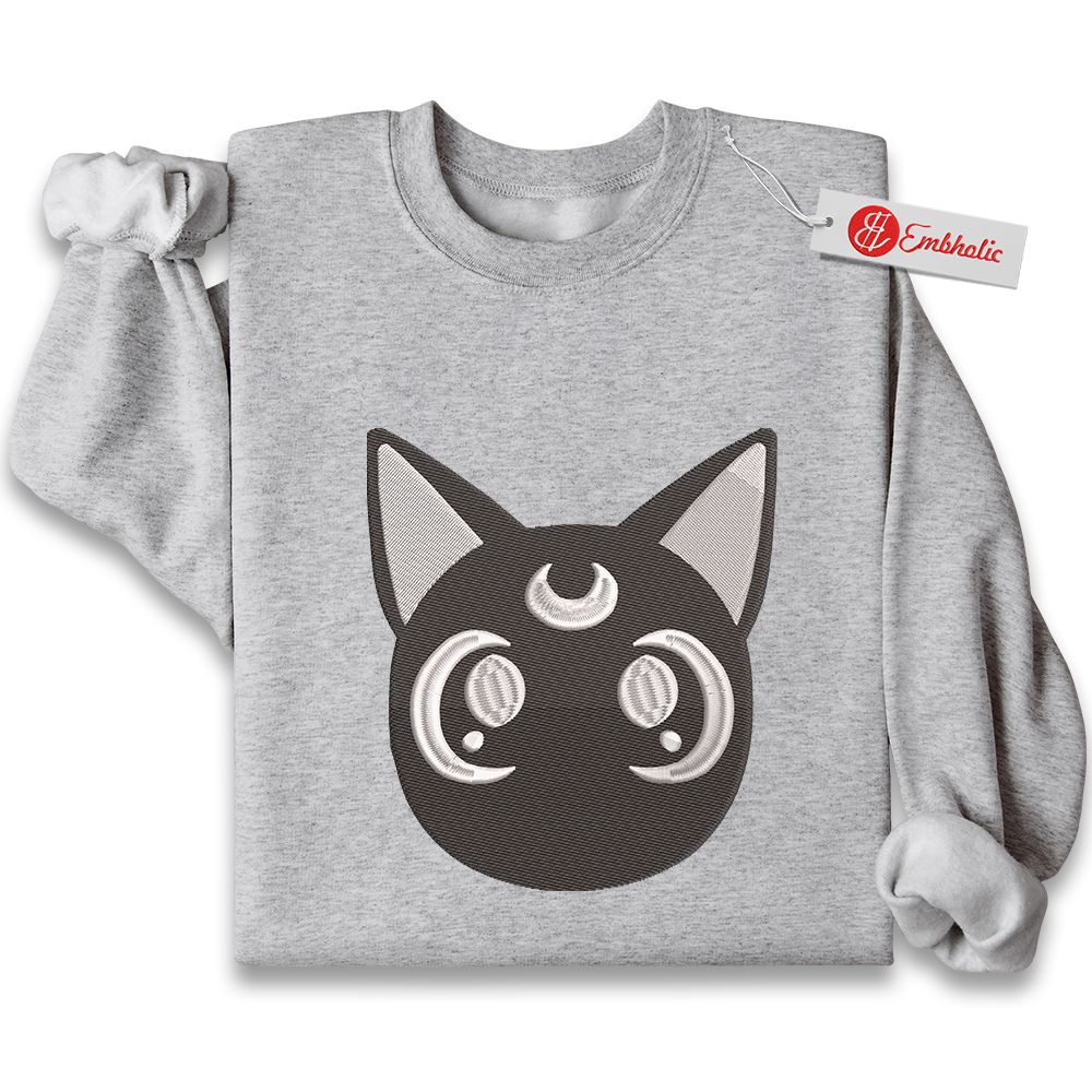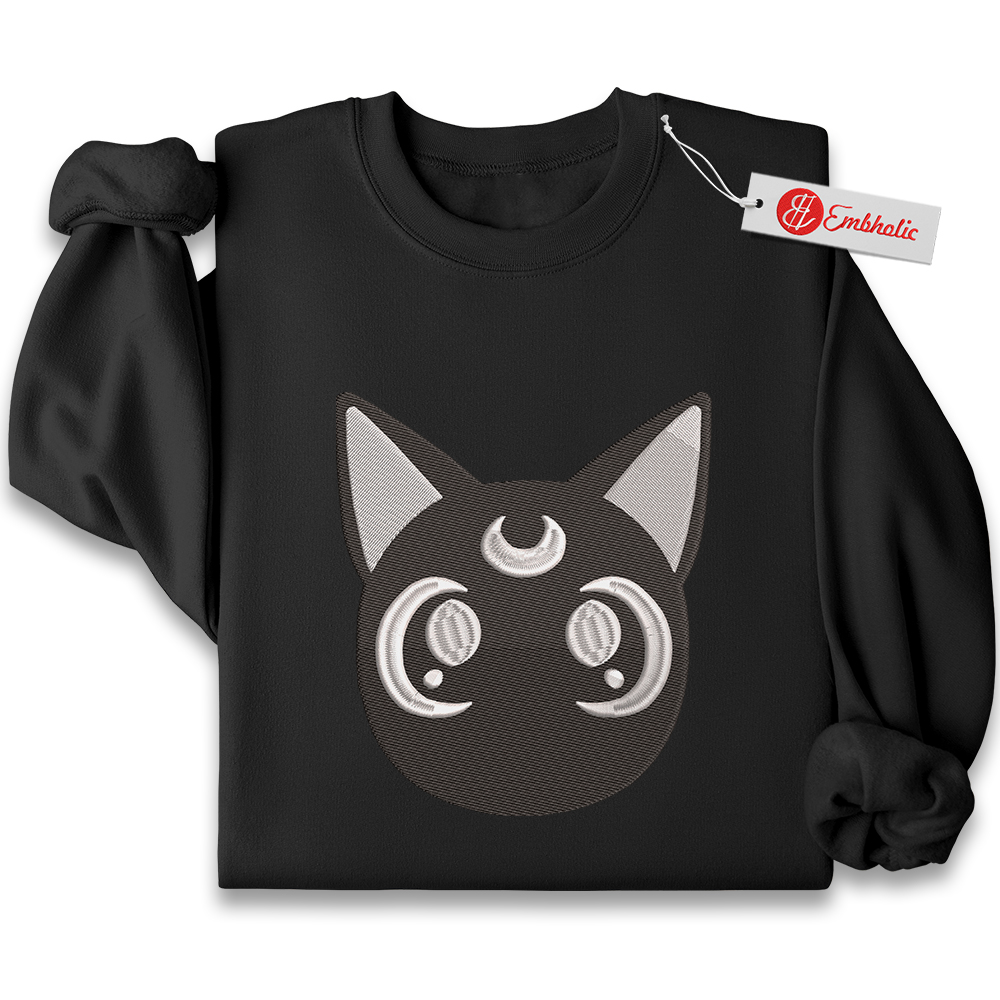 Embroidered Luna Cat Sweatshirt, Sailor Moon Shirt, Anime Embroidered Sweatshirt