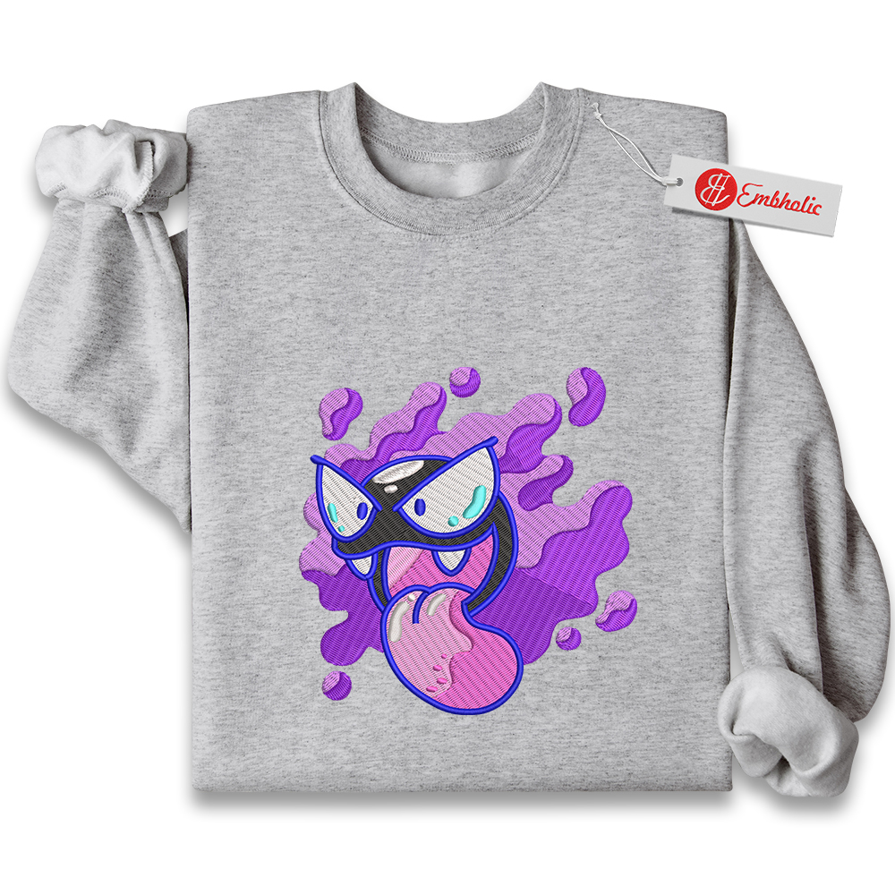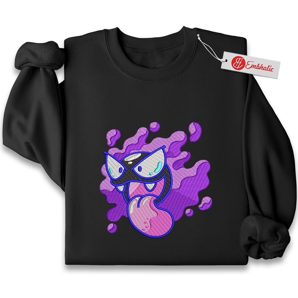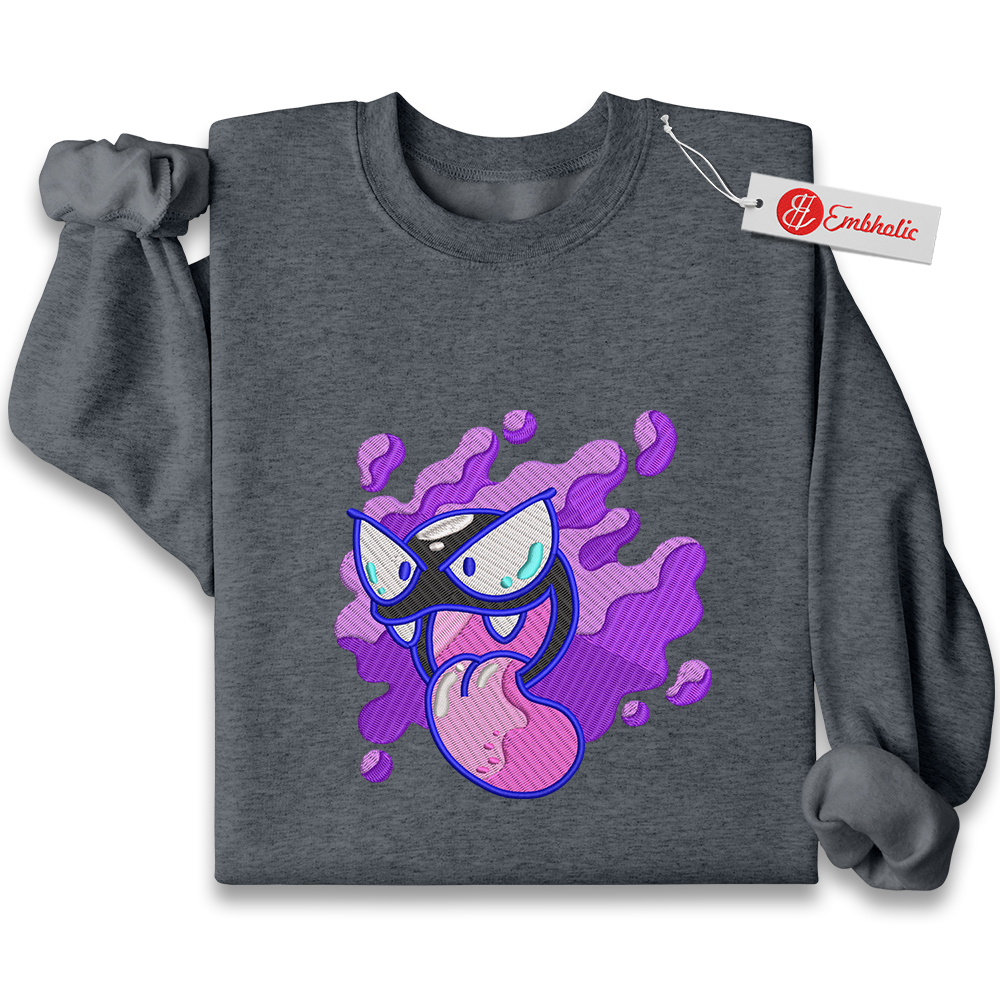 Gatsly Embroidered Sweatshirt, Pokemon Shirt, PKM Shirt, Anime Embroidered Sweatshirt