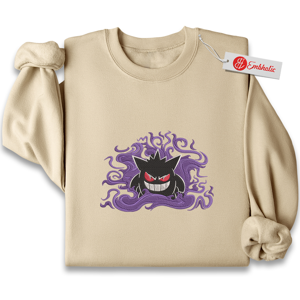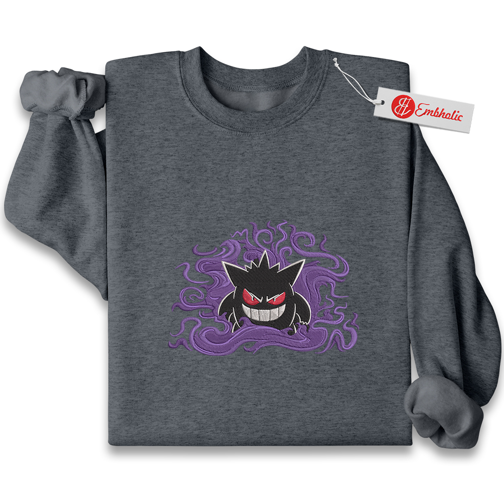 Gengar Embroidered Sweatshirt, Pokemon Shirt, PKM Shirt, Anime Embroidered Sweatshirt