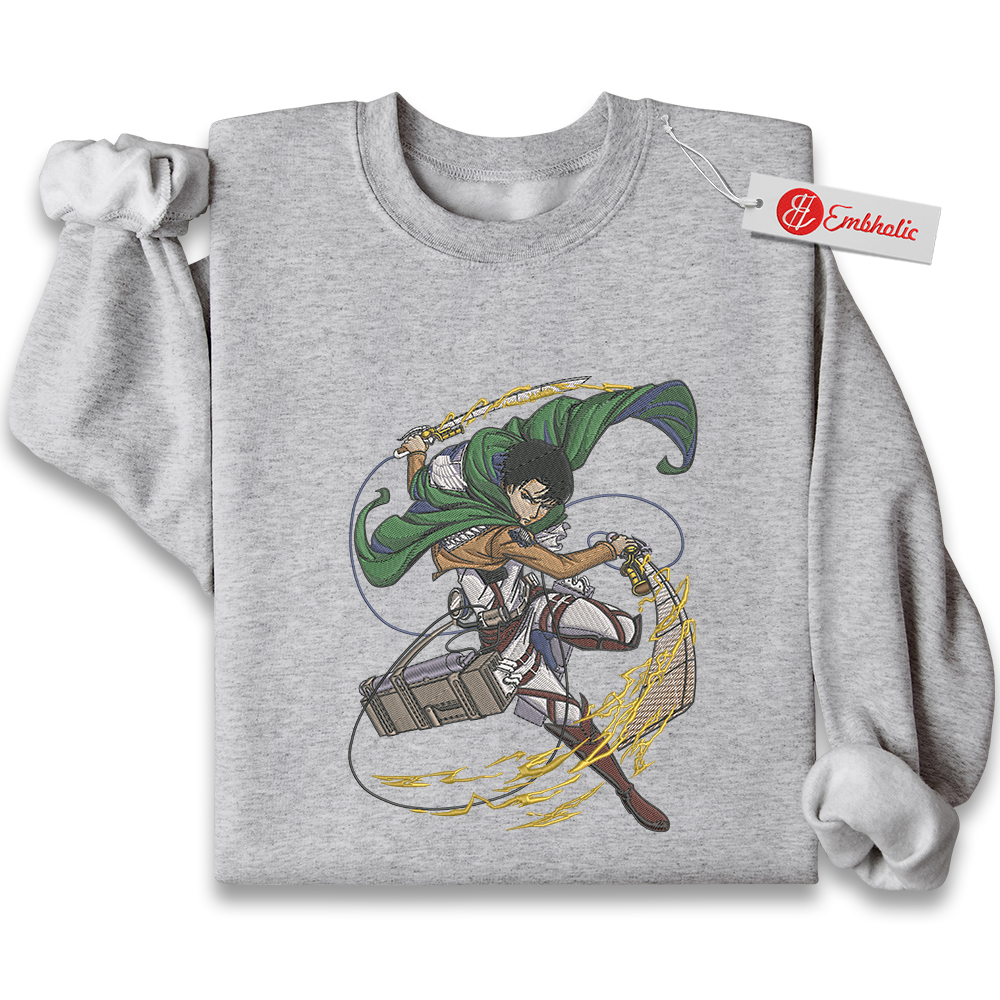 Levi Ackerman Embroidered Sweatshirt, Attack on Titan Shirt, AOT Shirt, Anime Embroidered Sweatshirt