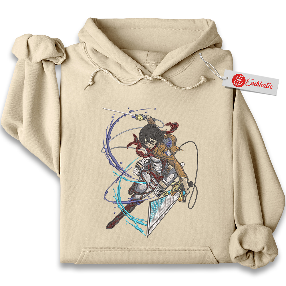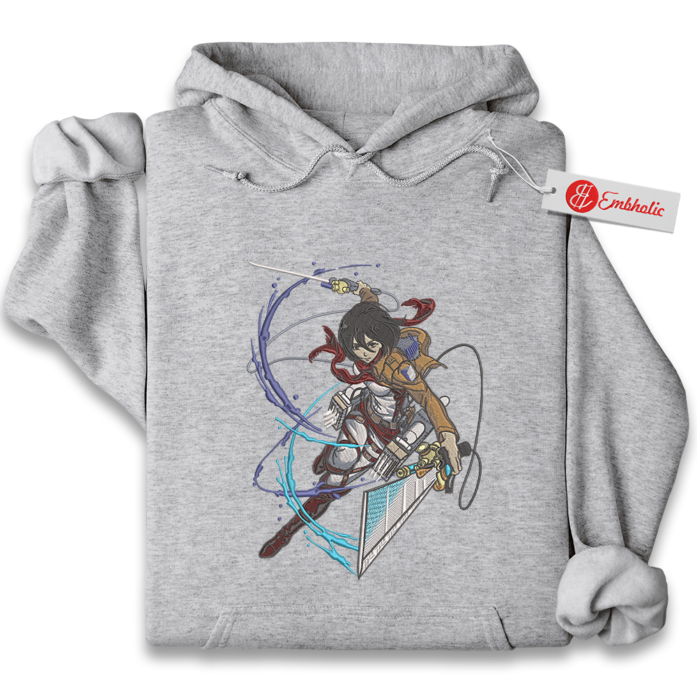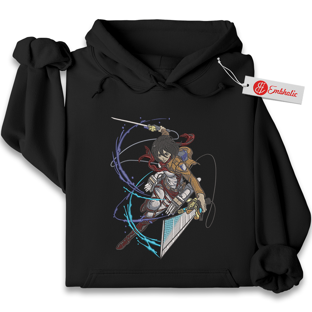 Mikasa Ackerman Embroidered Hoodie, Attack on Titan Shirt, AOT Shirt, Anime Embroidered Hoodie