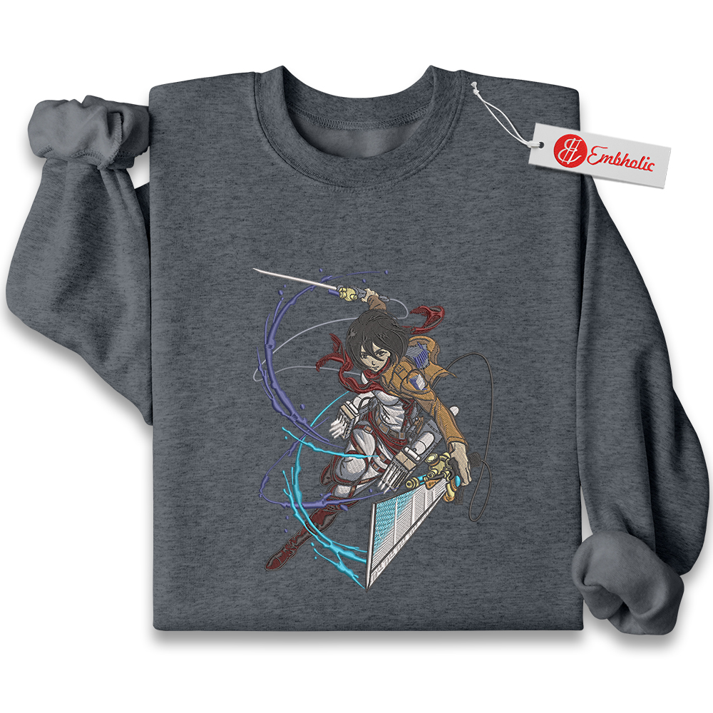 Mikasa Ackerman Embroidered Sweatshirt, Attack on Titan Shirt, AOT Shirt, Anime Embroidered Sweatshirt