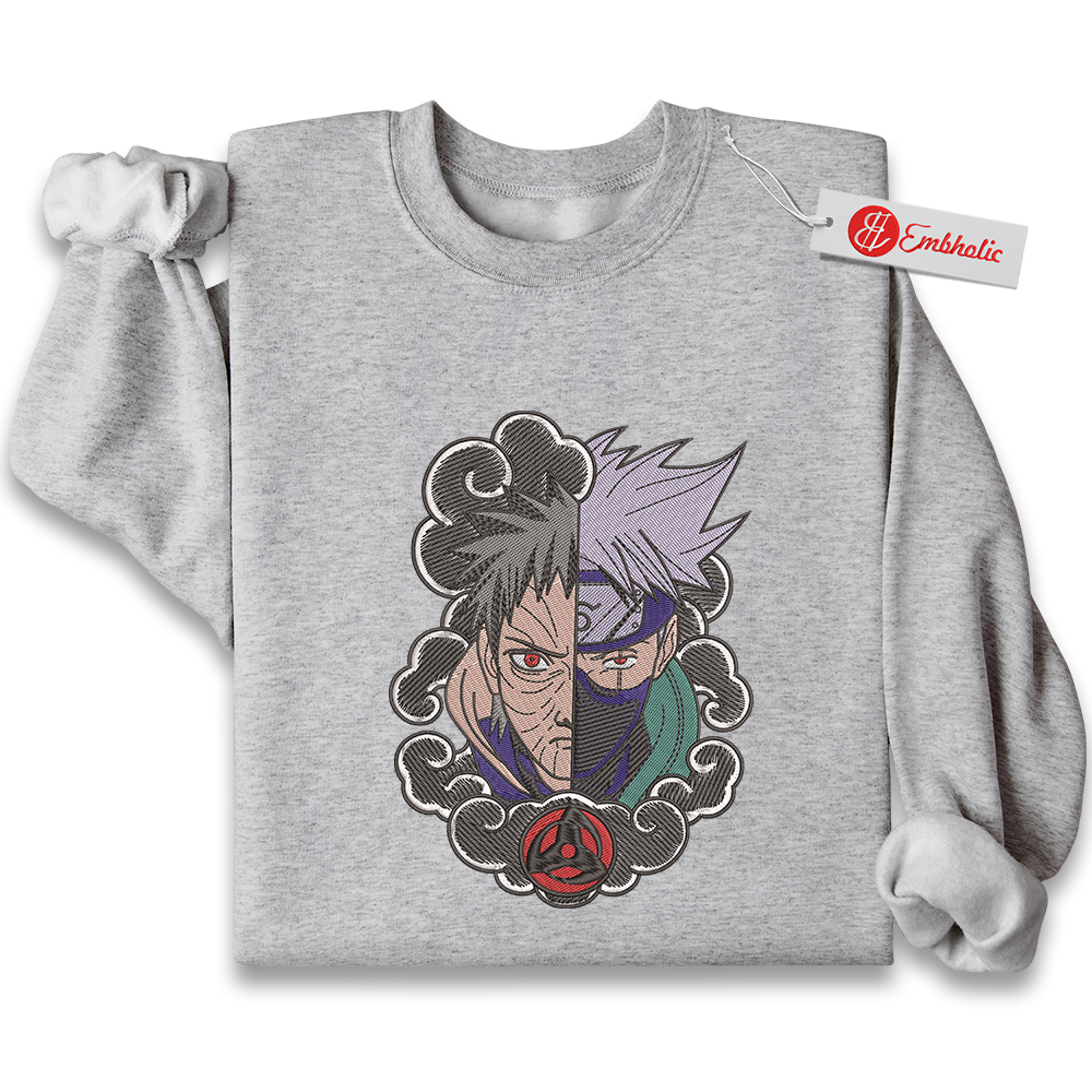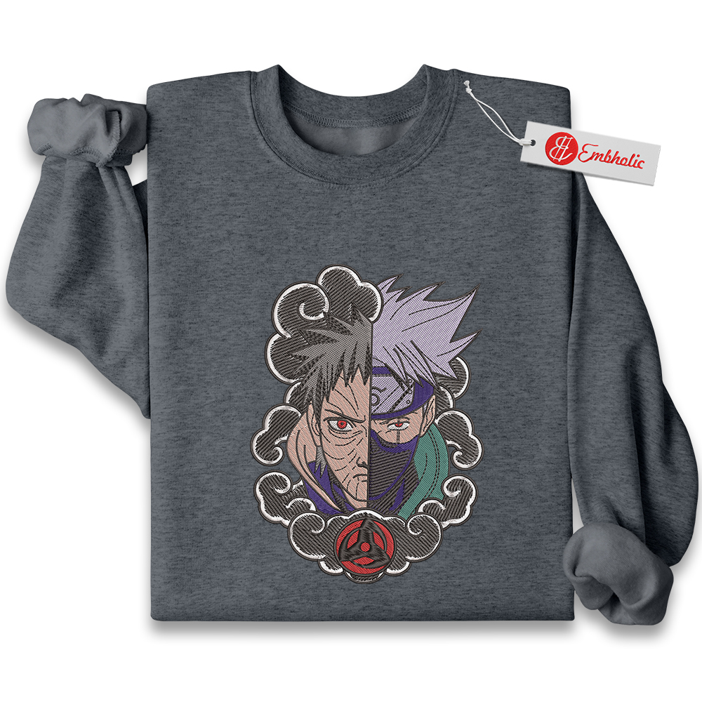 Obito vs Kakashi Embroidered Sweatshirt, Naruto Shirt, Anime Embroidered Sweatshirt