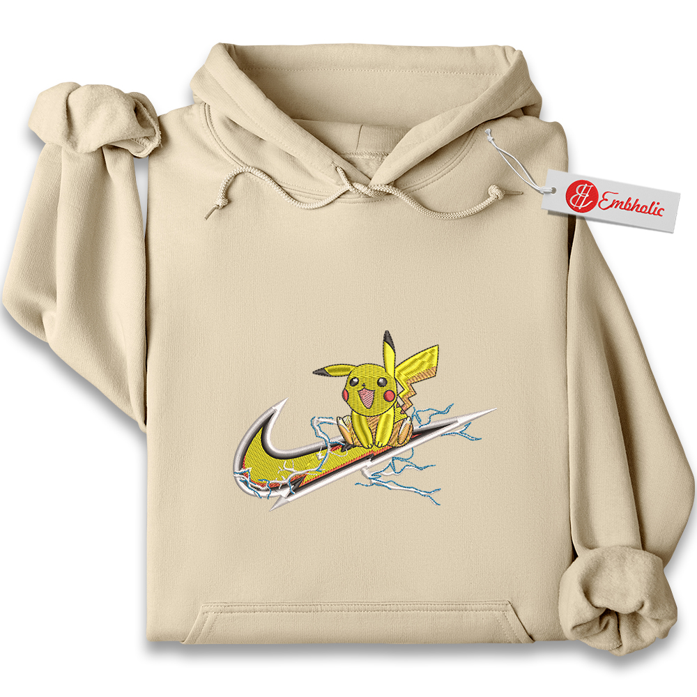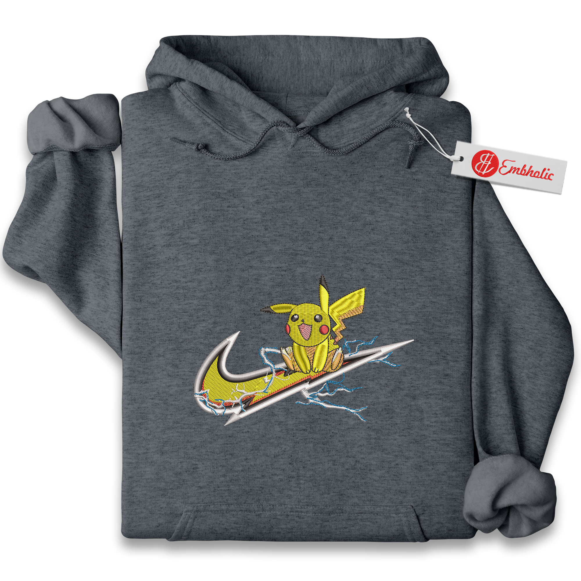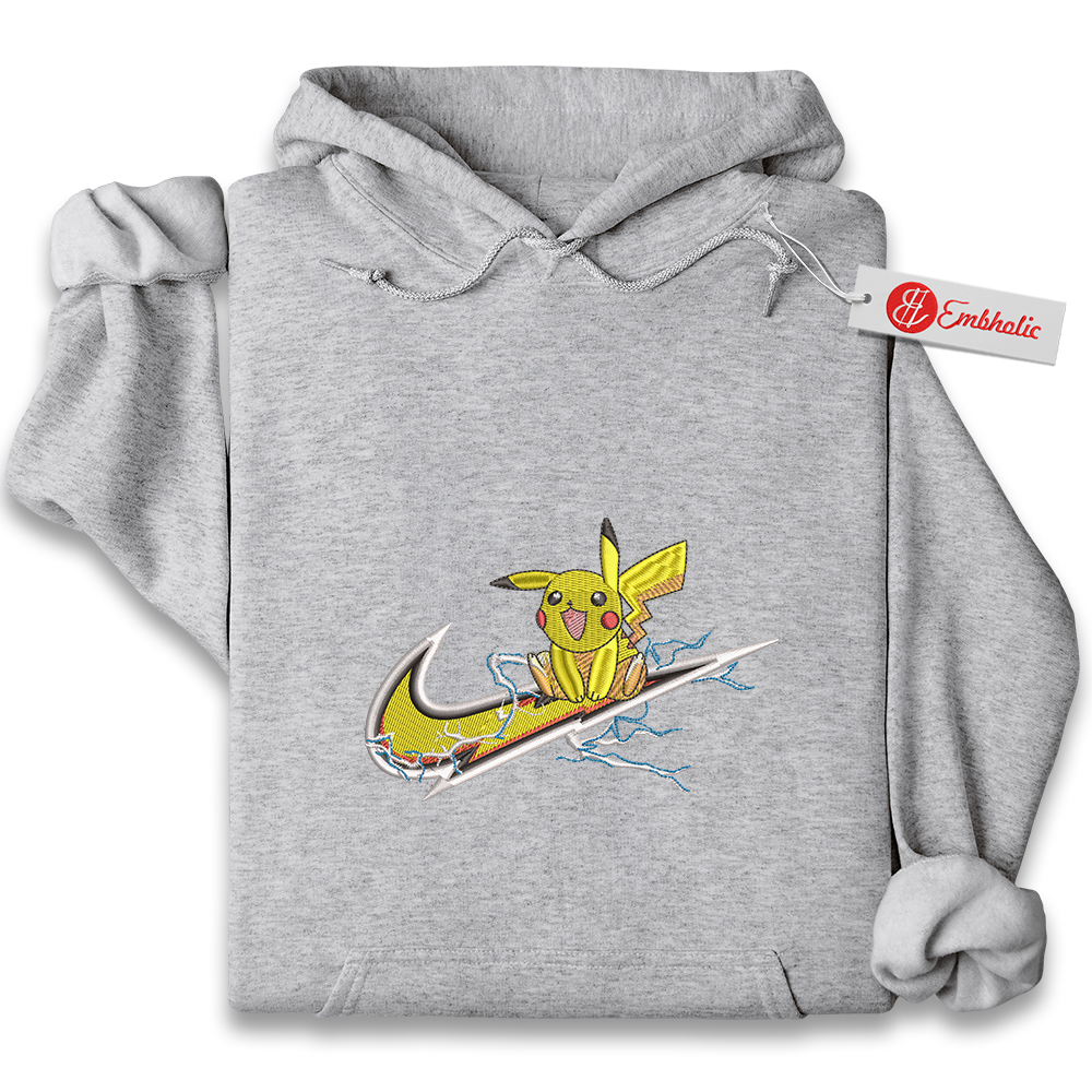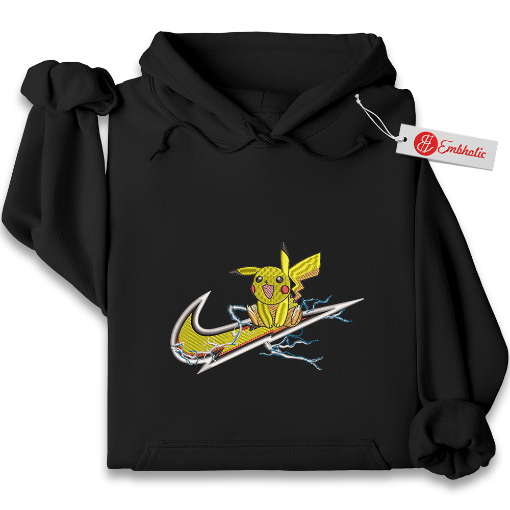Pikachu Embroidered Hoodie, Pokemon Shirt, PKM Shirt, Anime Embroidered Hoodie
