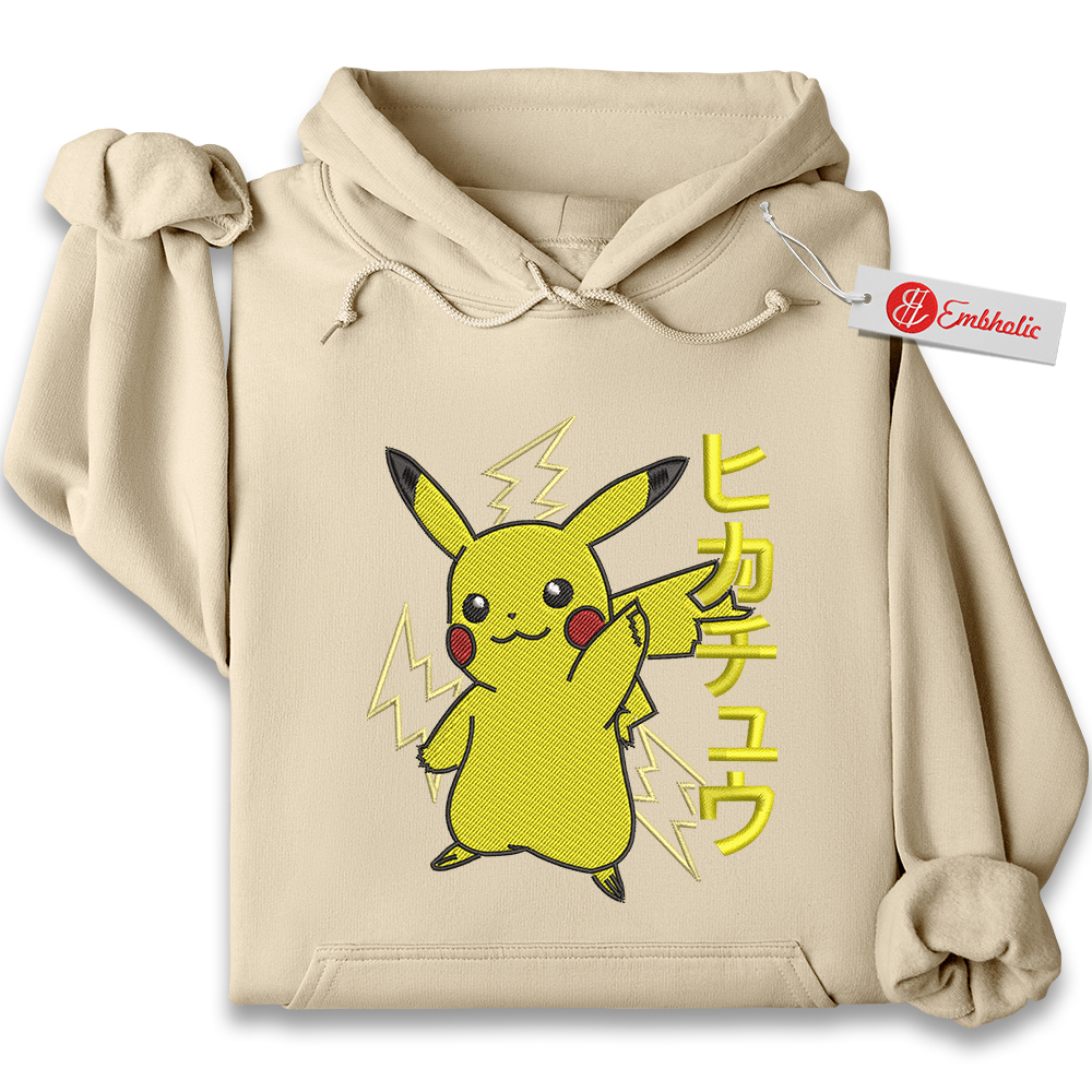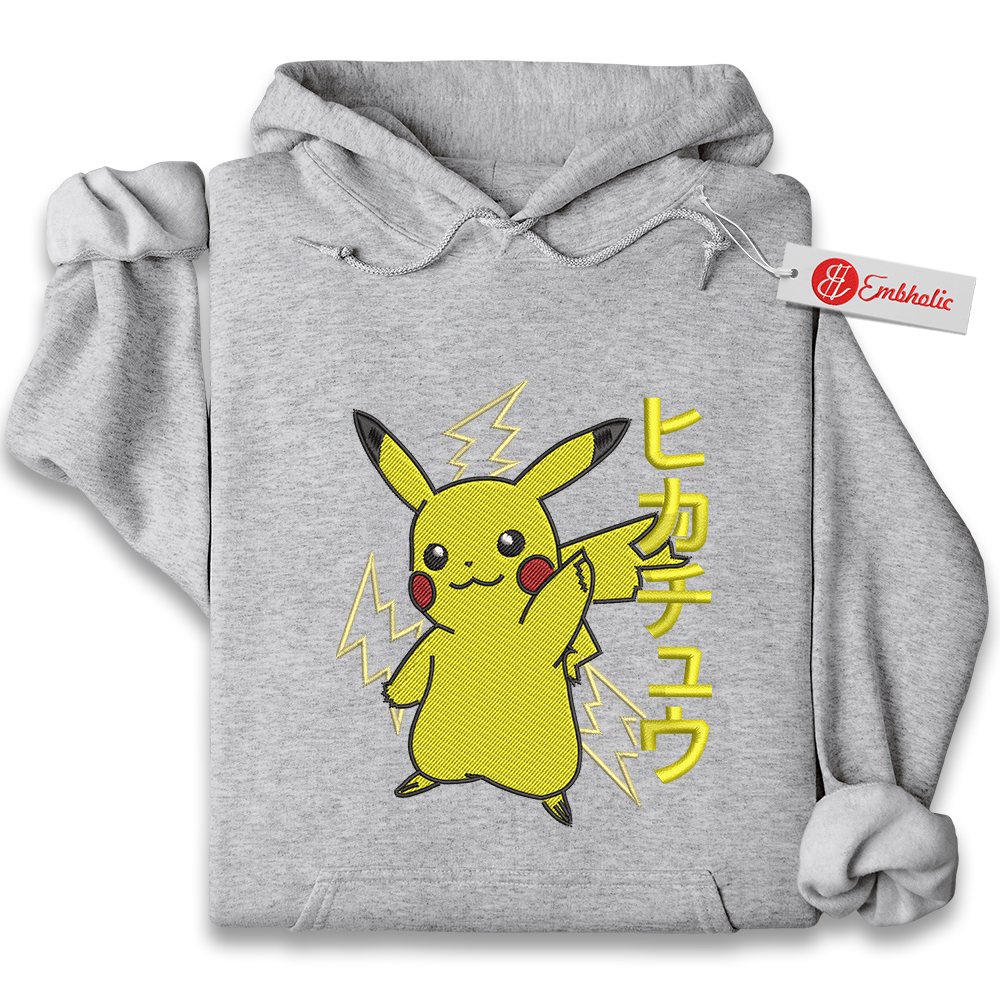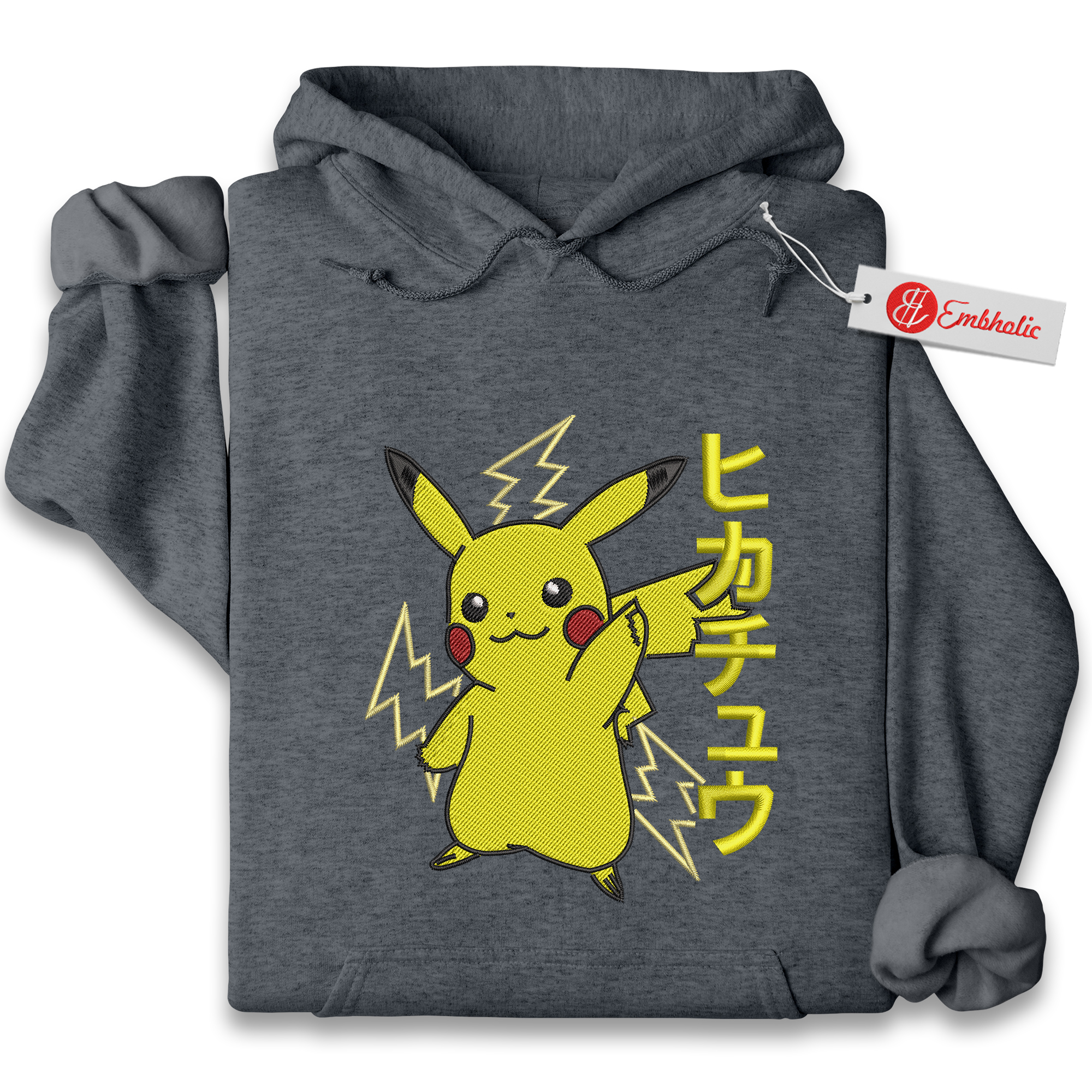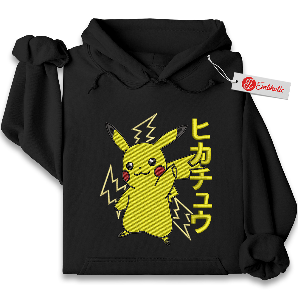 Pikachu Embroidered Hoodie, Pokemon Shirt, PKM Shirt, Anime Embroidered Hoodie