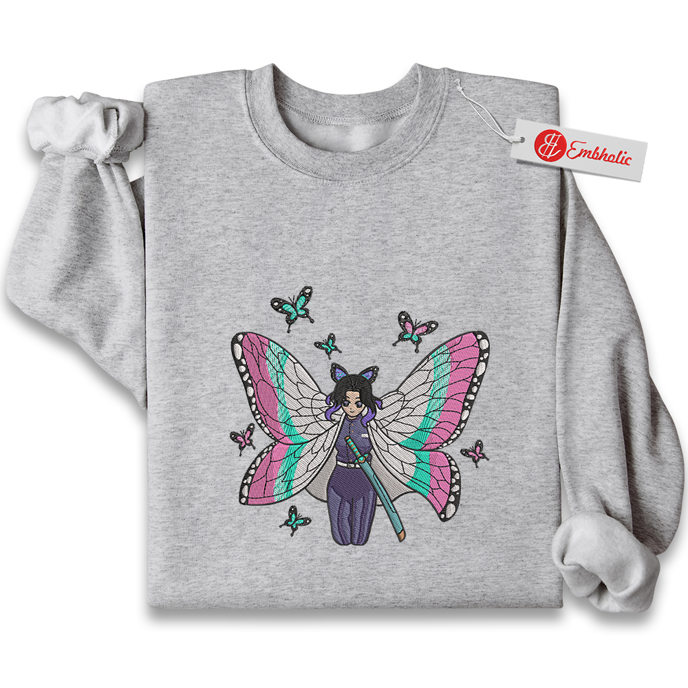 Shinobu Kocho Embroidered Sweatshirt, Demon Slayer Shirt, Anime Embroidered Sweatshirt