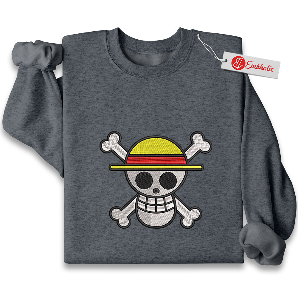 Straw Hat Pirates Embroidered Sweatshirt, One Piece Shirt, Anime Embroidered Sweatshirt