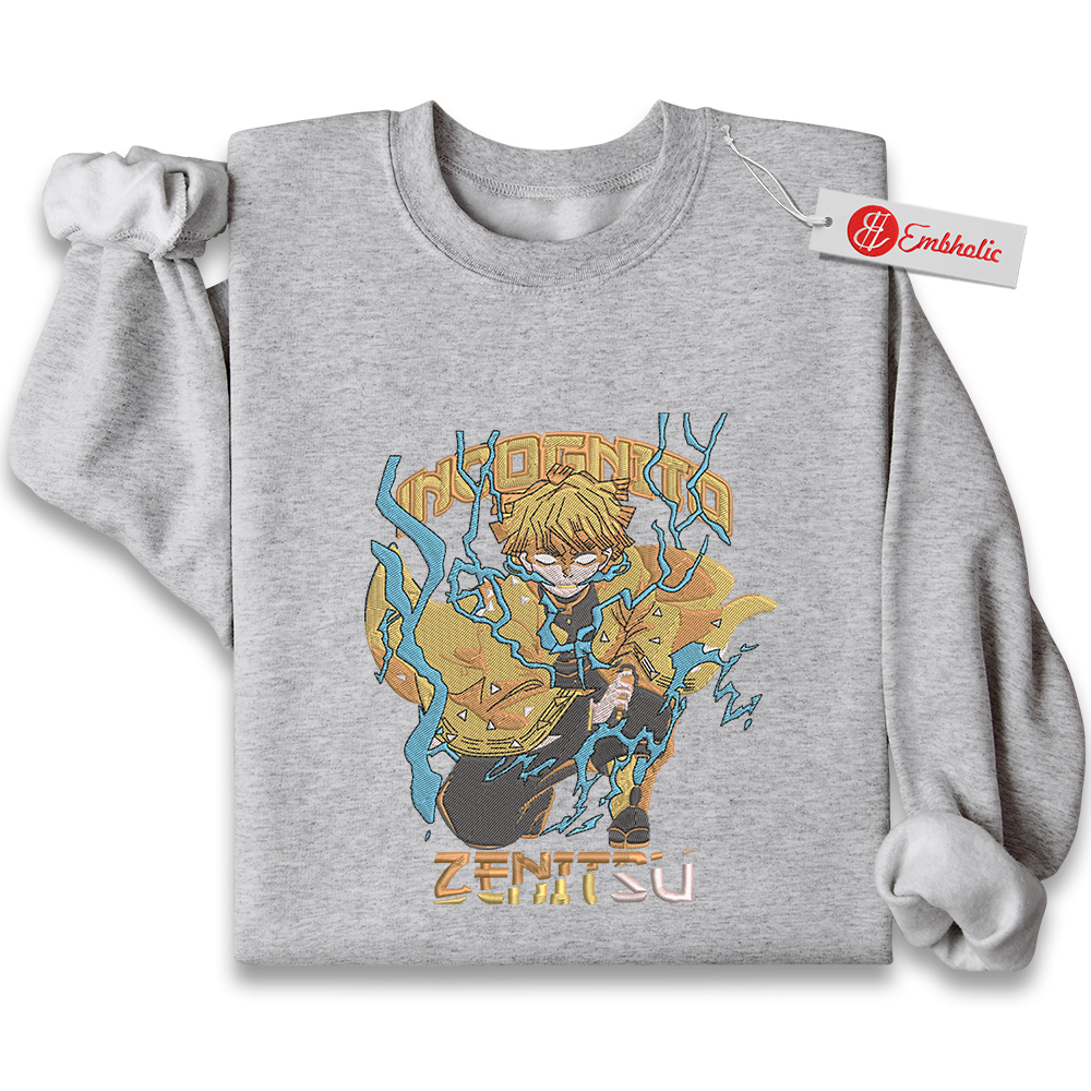 Zenitsu Agatsuma Embroidered Sweatshirt, Demon Slayer Shirt, Anime Embroidered Sweatshirt